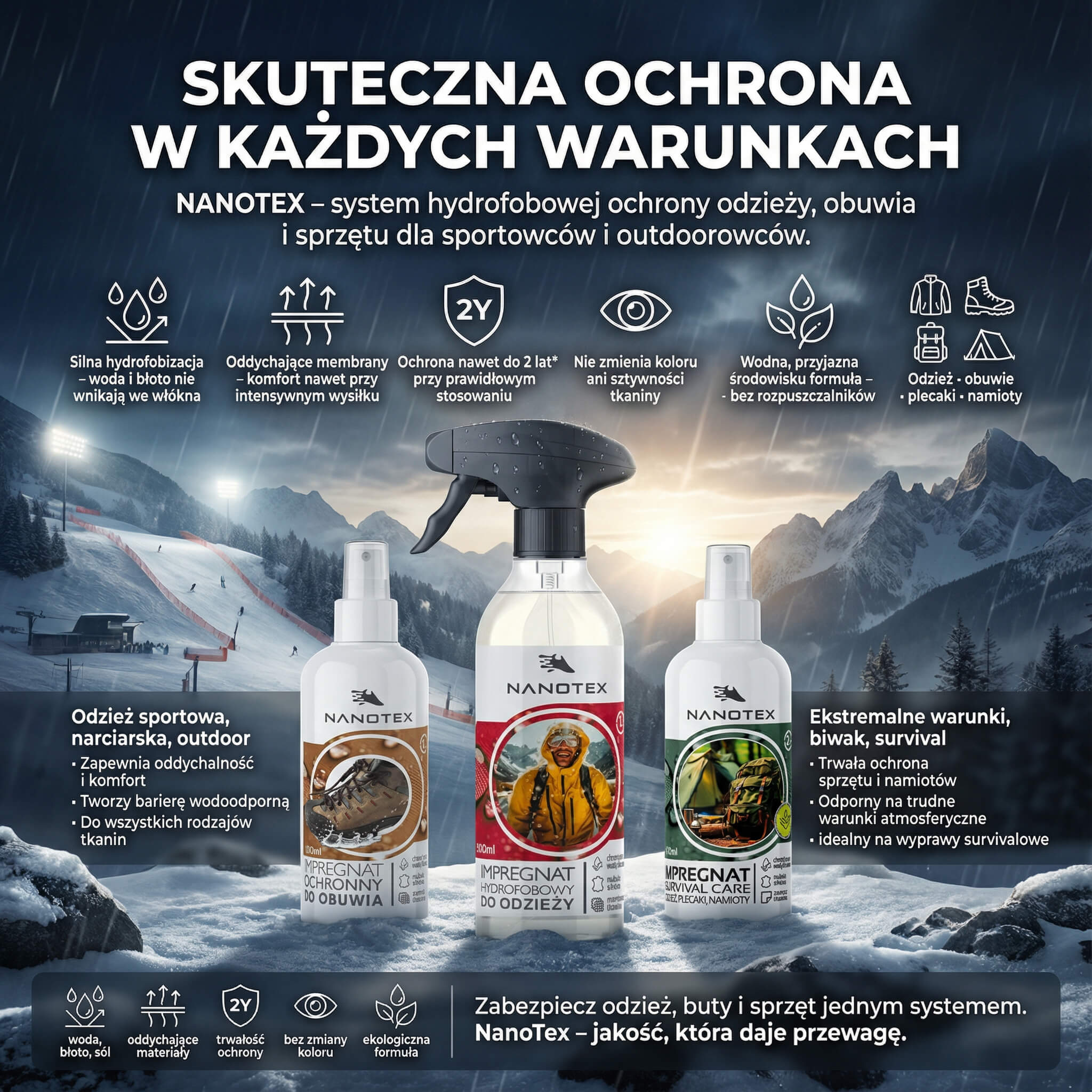 NanoTex impregnat hydrofobowy do tkanin tworzy trwałą barierę chroniącą przed wodą, solą i zabrudzeniami, zachowując jednocześnie pełną paroprzepuszczalność materiału. To ekonomiczne i ekologiczne rozwiązanie, które wydłuża żywotność zarówno tkanin syntetycznych, jak i naturalnych.