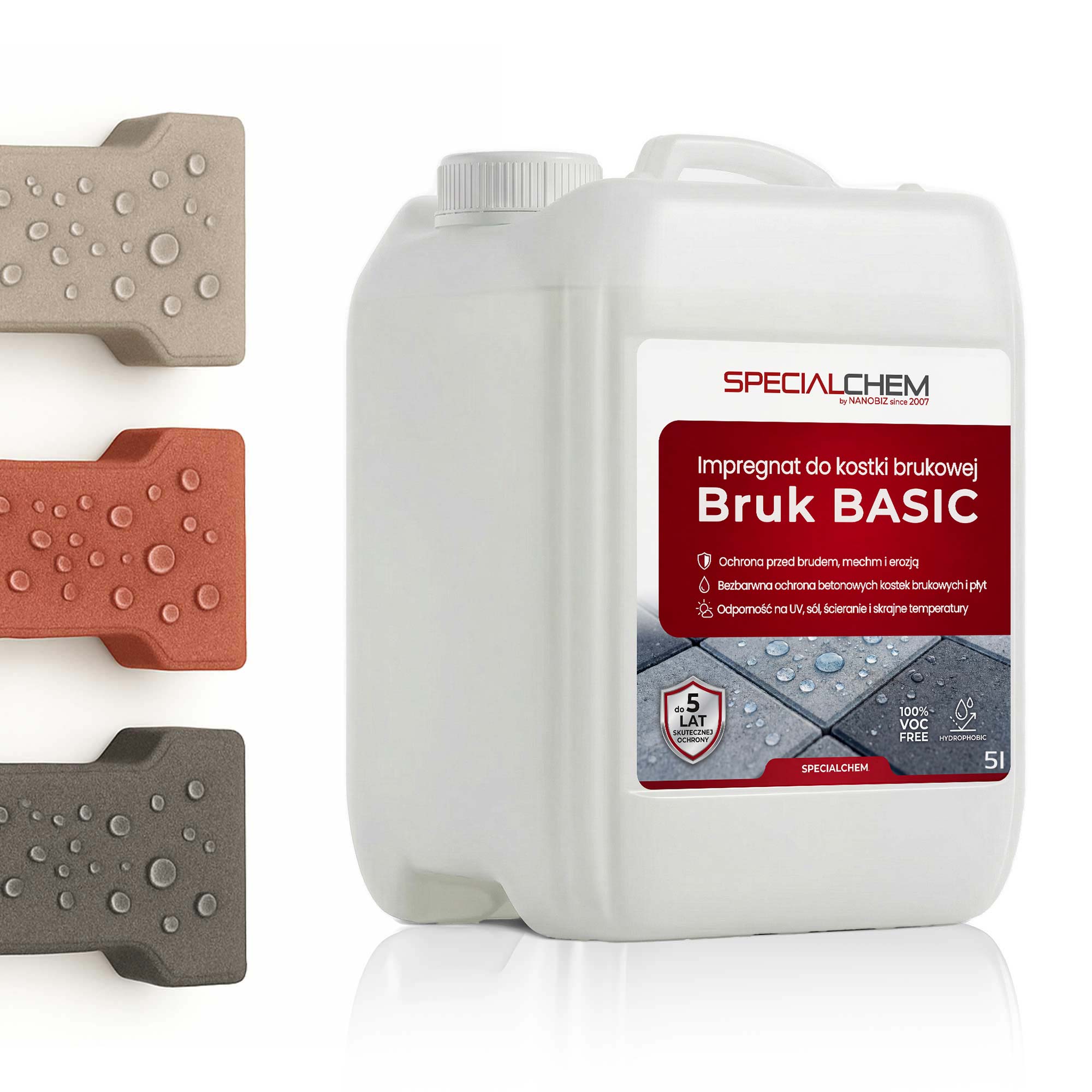SPECIALCHEM Bruk Basic impregnat hydrofobowy do kostki brukowej to innowacyjny produkt, zaprojektowany specjalnie do zabezpieczania powierzchni kostki betonowej oraz płyt betonowych. Dzięki zaawansowanej formule opartej na nanotechnologii i cząsteczkach silanów, oferuje skuteczną ochronę przed zabrudzeniami i ogranicza wchłanianie wilgoci, co jest kluczowe dla zachowania estetyki i trwałości nawierzchni.